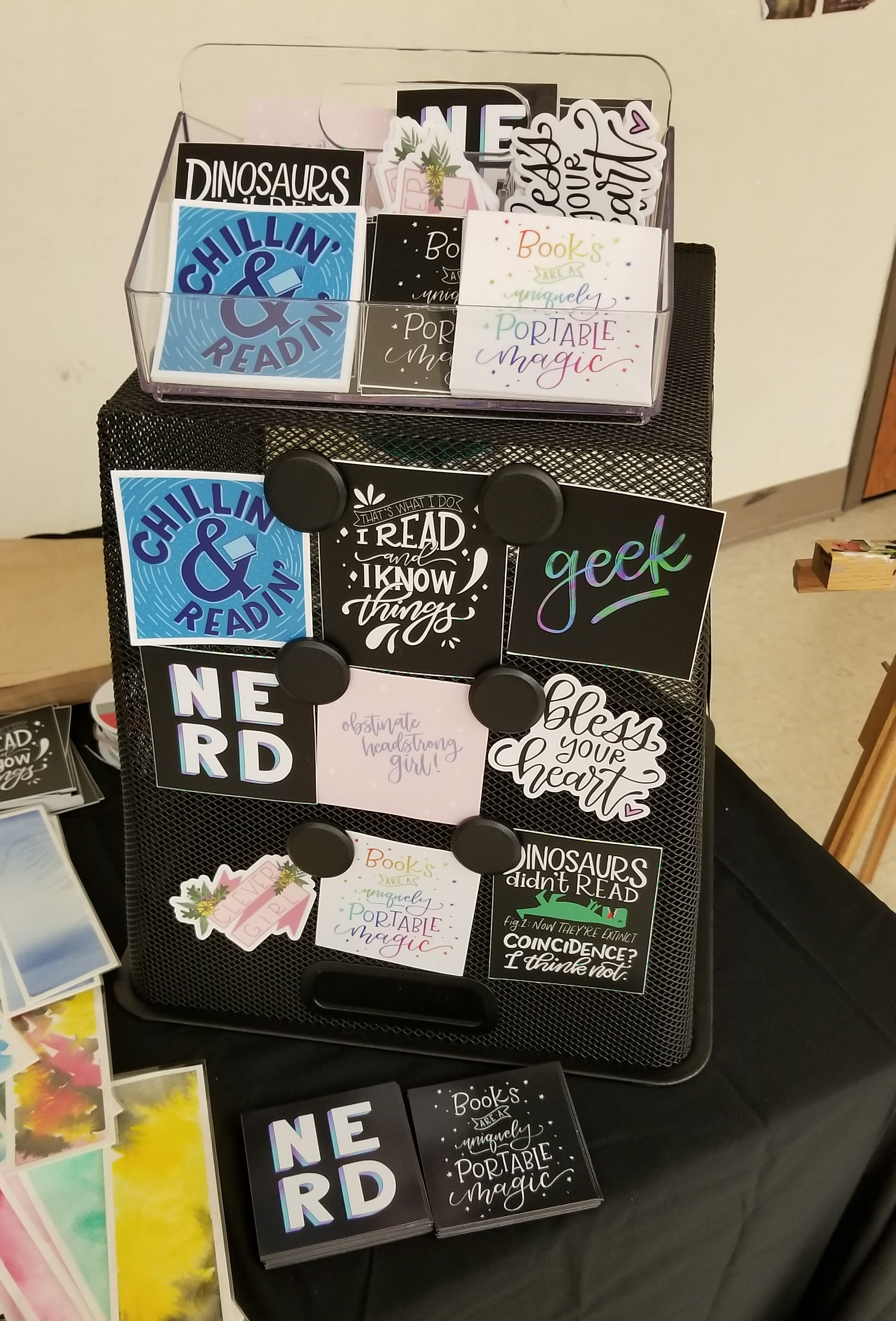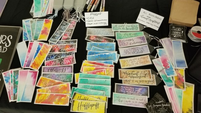 I watched as parents and teachers chuckles over my posters, some even dragging their kids over to my table to say, “See? This is why you should read.” I saw kids get excited to see dinosaurs and colorful bookmarks. I was thrilled that my favorite products–Clever Girl, Dinosaurs Didn’t Read, I Read and I Know Things, Chillin and Readin, and my custom handlettered/handpainted bookmarks–were the ones that did well.