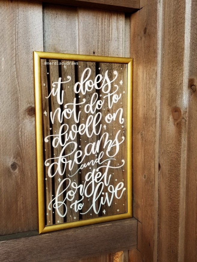 Toward the end of the event, I got to meet some really fun people. One woman told me about Rebecca Solnit and gave me a new quote to letter: “Books are solitudes in which we meet.” One couple asked me to autograph my “Dinosaurs” print when they found out I’m the one who designed it. And then I closed the night with an absolutely bewitching group of women who wanted to talk about who they loved and hated out of the Brontes, Austen, Woolf, and Chopin. One of them was a professor who gave a couple of talks at Leaky Con here in Dallas! AMAZING.