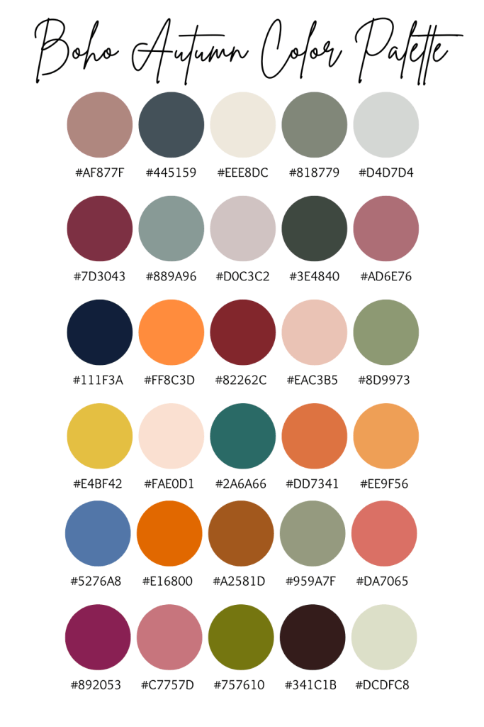 Here is my “Trendy Autumn Colors for Zillennials” Palette that I made from pulling colors from my craft store trips and favorite floral arrangements on Pinterest!