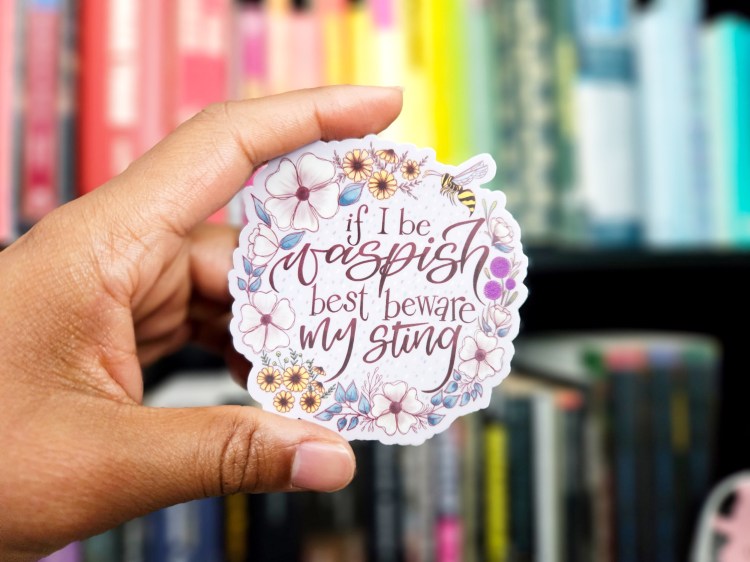 I love how these colors turned out on the first of my fall floral literary designs! Here’s the sticker I made of a fun sassy line from Shakespeare: “If I be waspish, best beware my sting”!