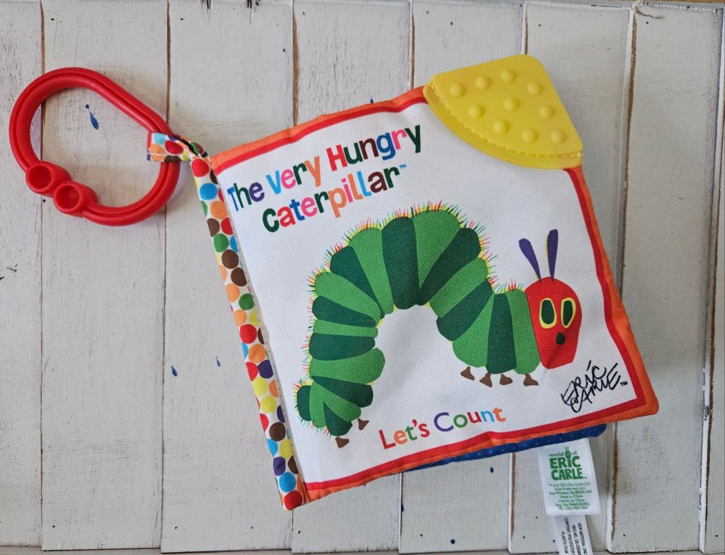 Some of these will come with a little rubber thing on the corner for them to chew on, too. These are great for traveling with because they can’t hurt anyone when they throw it and you can easily wash them when they get them dirty.