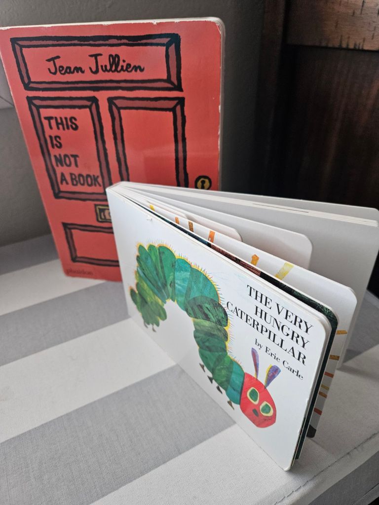 - Books that you are too scared baby will damage: First of all, the books are for the kids, so let them hold all of it, even if that means ripped pages. What’s more precious: the book, or your kid learning to love engaging with a book? But I get it, you spent $25 on that hardback. Get a board book instead and let them love it.