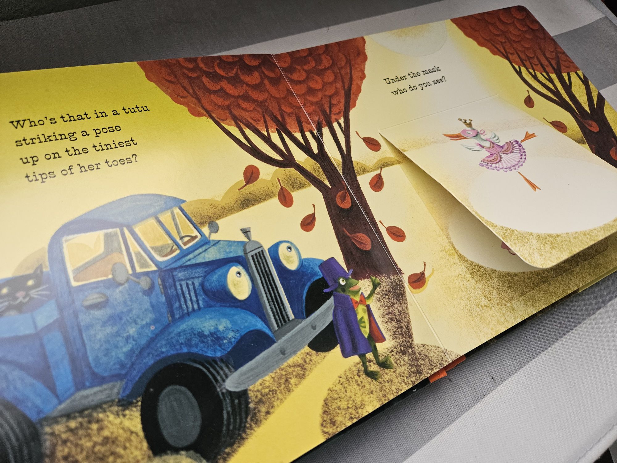 This is for when the kid gets a little older, like over 6 months. Lift-the-flap books let a kid play with the book while you read to them.